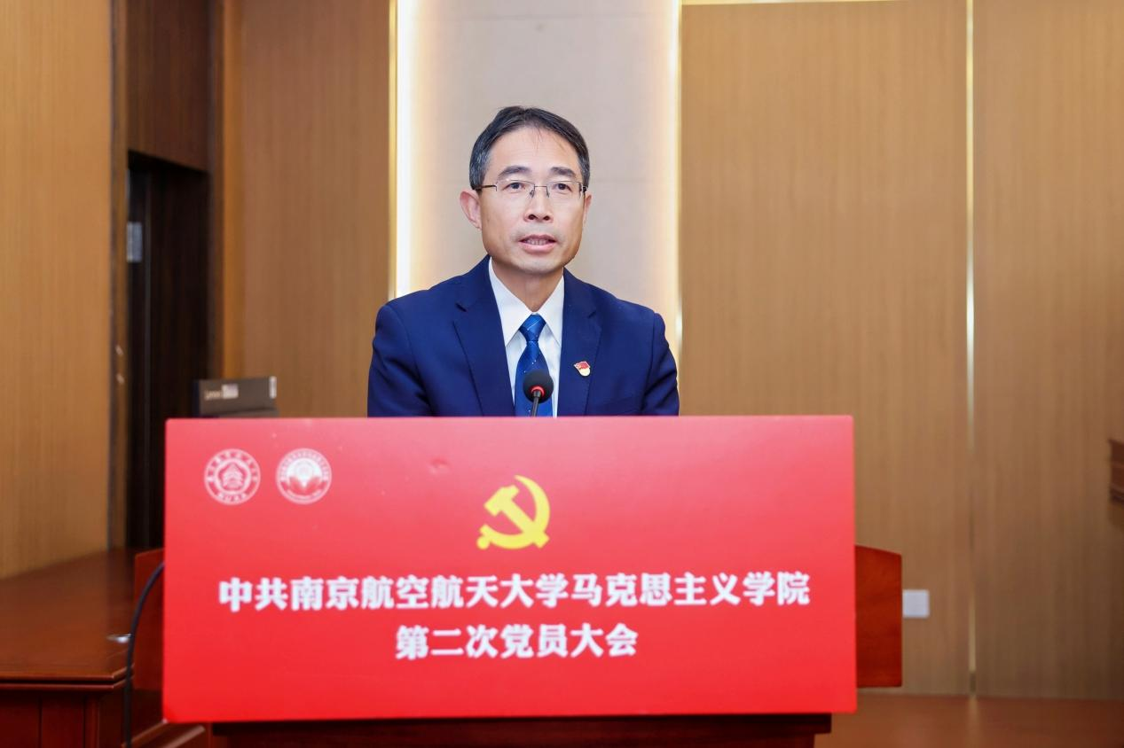 杭育新代表学校党委对大会的召开表示热烈祝贺,对马克思主义学院党委过去五年取得的成绩给予充分肯定。他希望学院以此次大会为新起点,深入学习贯彻习近平总书记致南航建校70周年重要勉励精神,在学校党委坚强领导下,振奋精神、增强自信,在新征程上实现更高质量发展。他对学院今后工作提出三点希望:一是坚持政治引领,马克思主义学院要走在前、作表率,把党的全面领导贯穿办学治院全过程各方面,为一流马院建设提供坚强政治保证,真正做到在马信马、在马言马、在马行马。二是坚持内涵发展,马克思主义学院要出实招、求实效,要在打造思政品牌方面下功夫,在教师队伍建设方面下功夫,在提升课程质量和实效方面下功夫,不断提升学院的核心竞争力。三是坚持求真务实,马克思主义学院要重担当、抓落实,要对标全国重点马院建设标准,明确学院的差距和赶超路径,制定详细的任务书、路线图、时间表,层层分解任务,确保各项战略部署落实到位。
