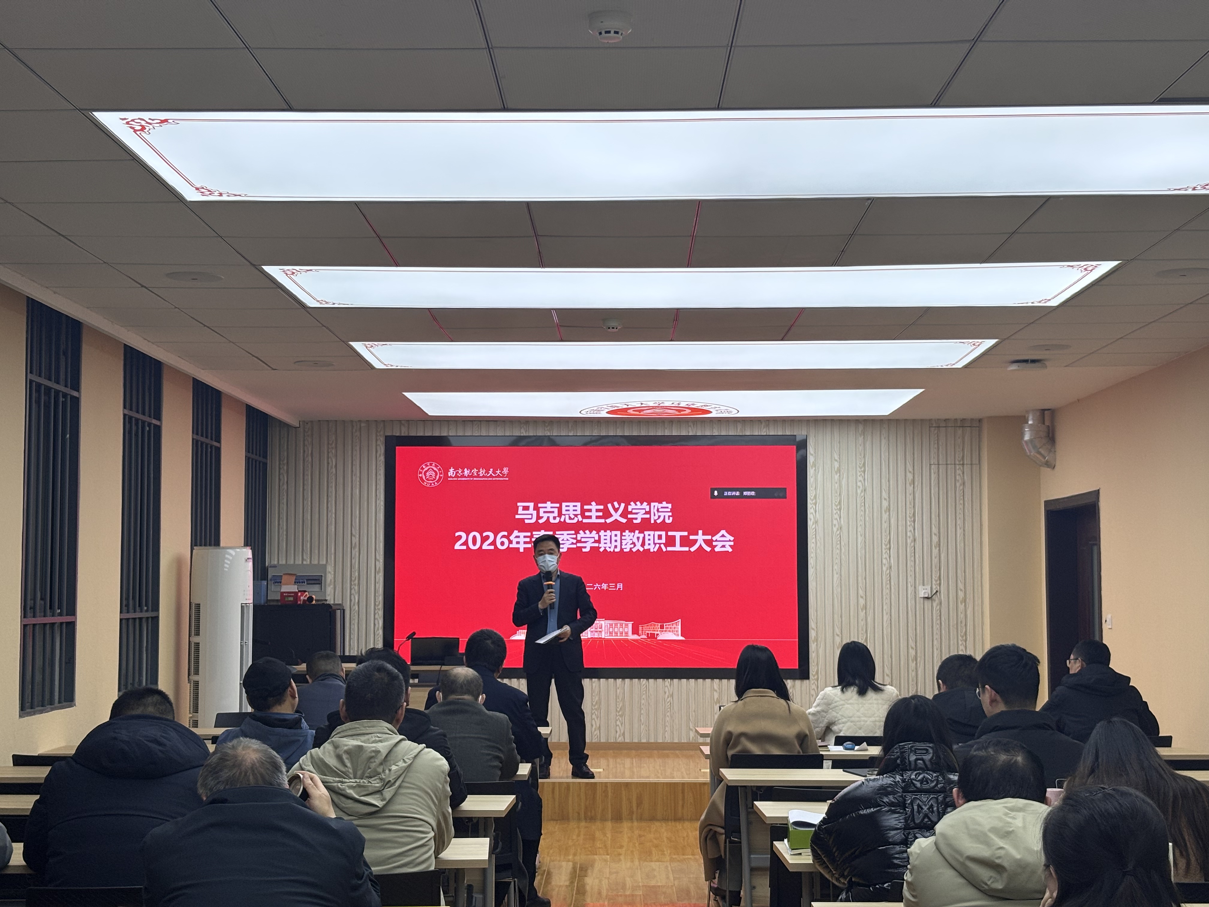 3月16日,马克思主义学院在学院楼112会议室召开2026年春季学期全体教职工大会。院长王智主持会议。